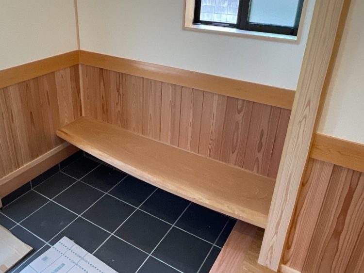玄関には、ちょっと腰かけられる心遣いのベンチも。