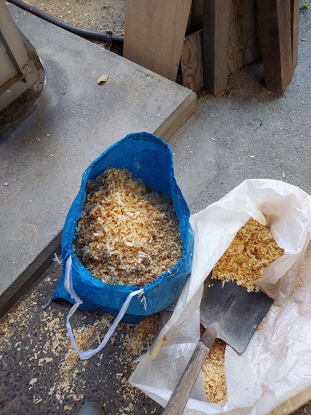 加工場では木材を加工するため、木の削りカス(おがくず)が出ます。