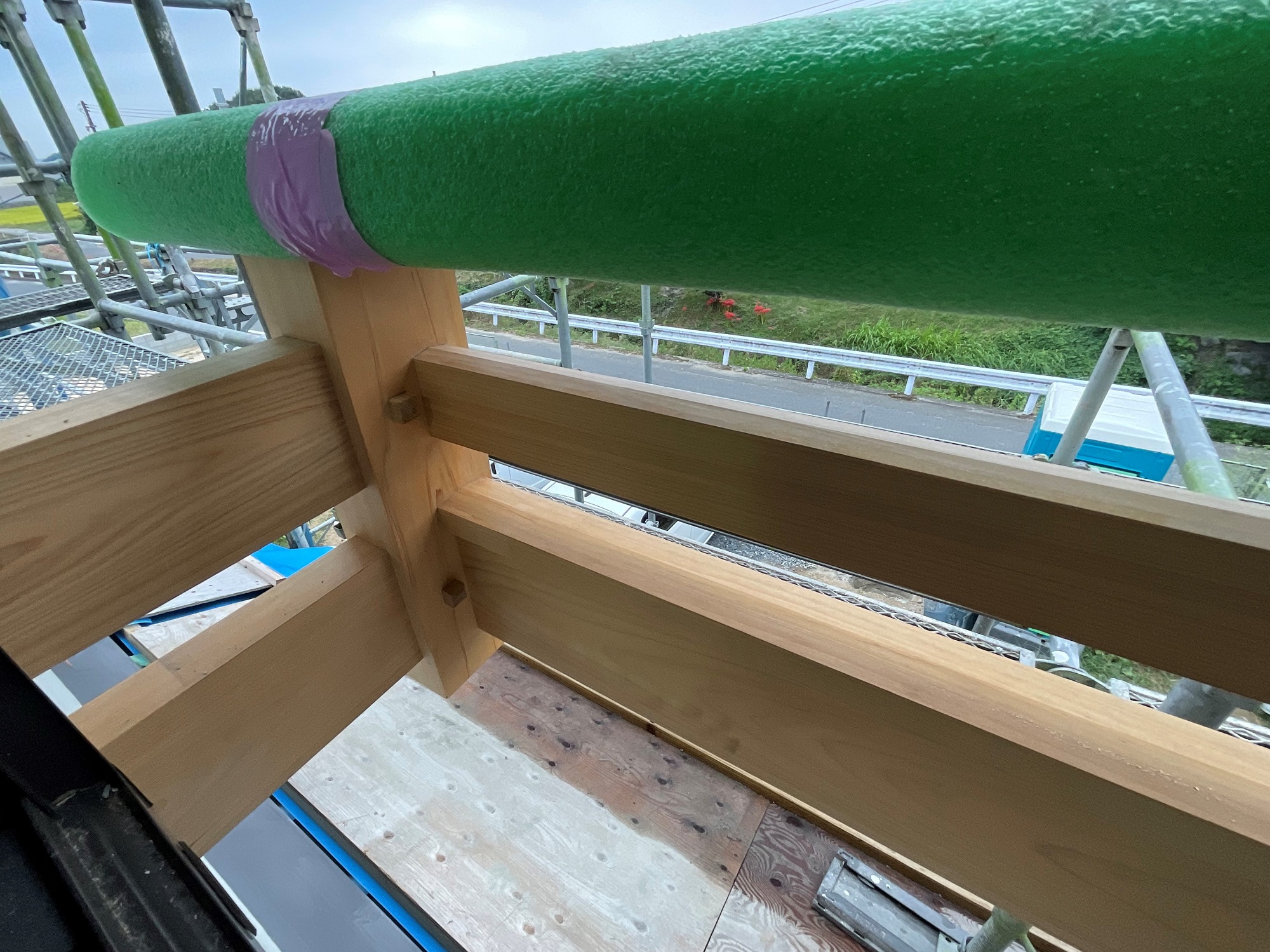 こちらは以前の訪問の時に大工さんが作っていた木製手すりの内側です。
