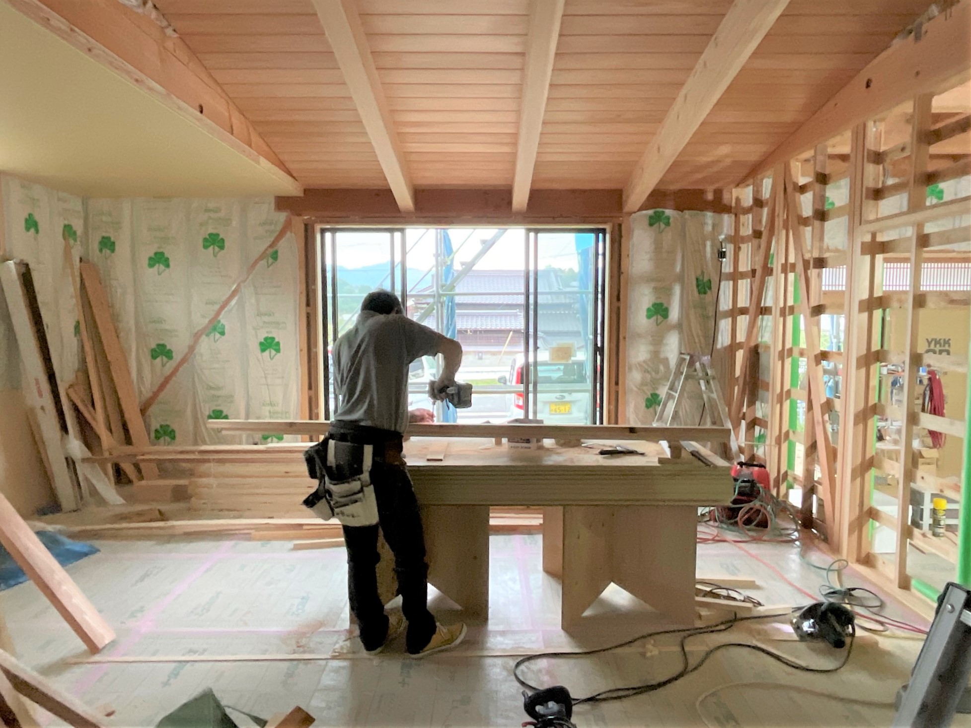 この日は大工さんが室内で造作工事をしていました。