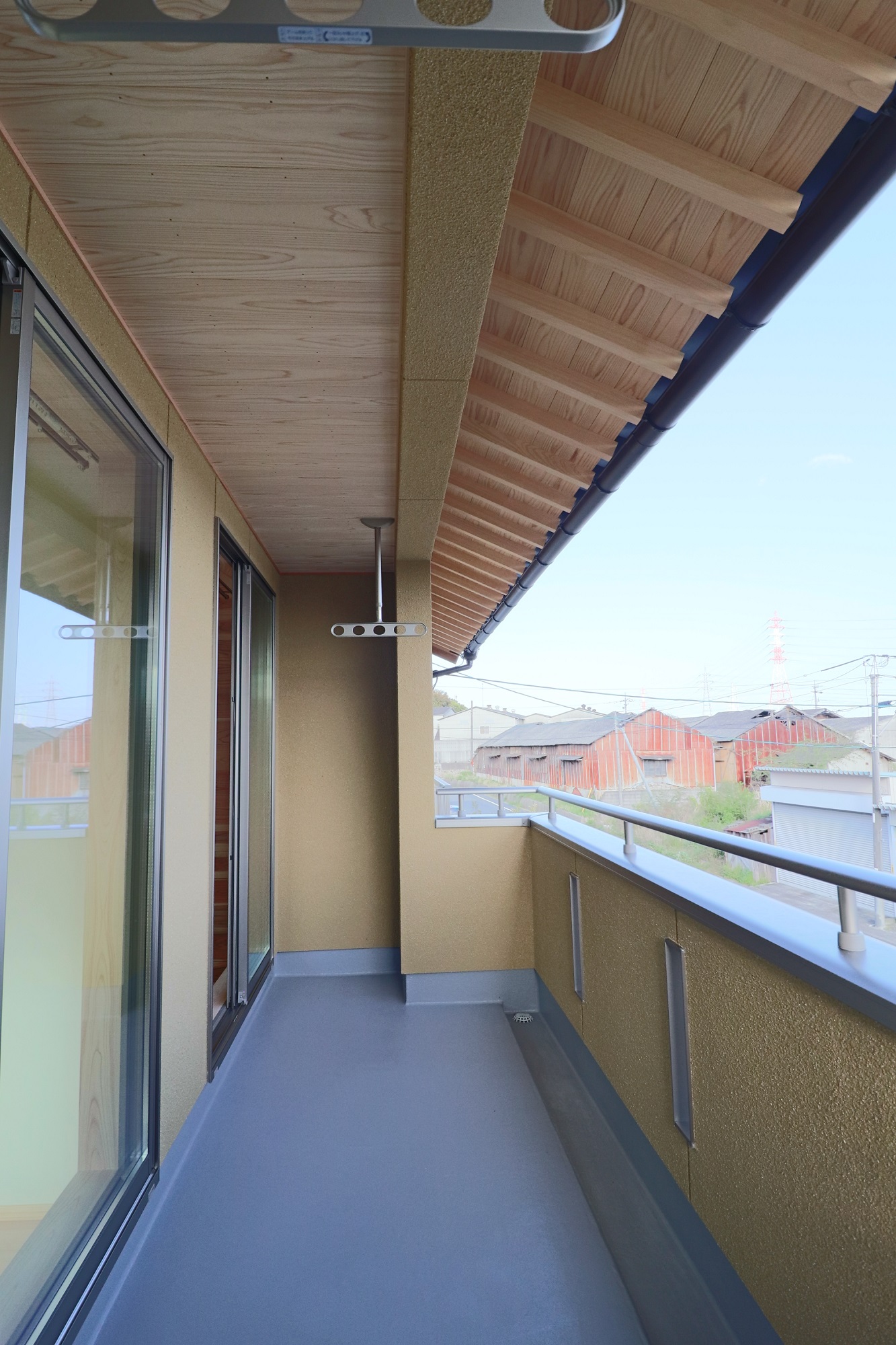 バルコニー:ベランダと同じスペースをいいますが、屋根が無い場合を呼ぶようです。