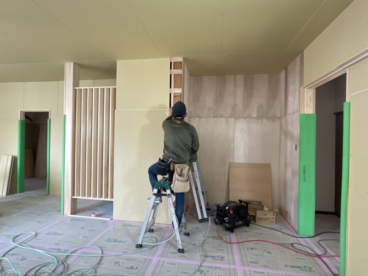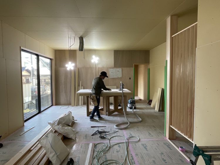 ただ今、大工さんの造作作業中です。