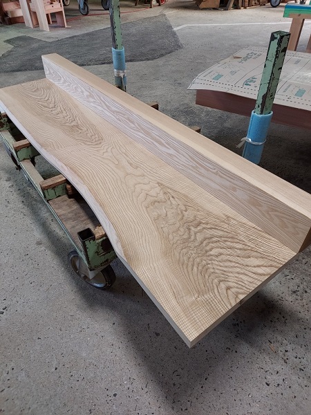 写真は、K樣邸で使用するタモの玄関框とホワイトアッシュの式台です。