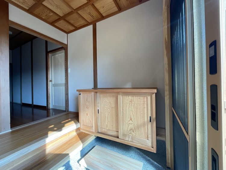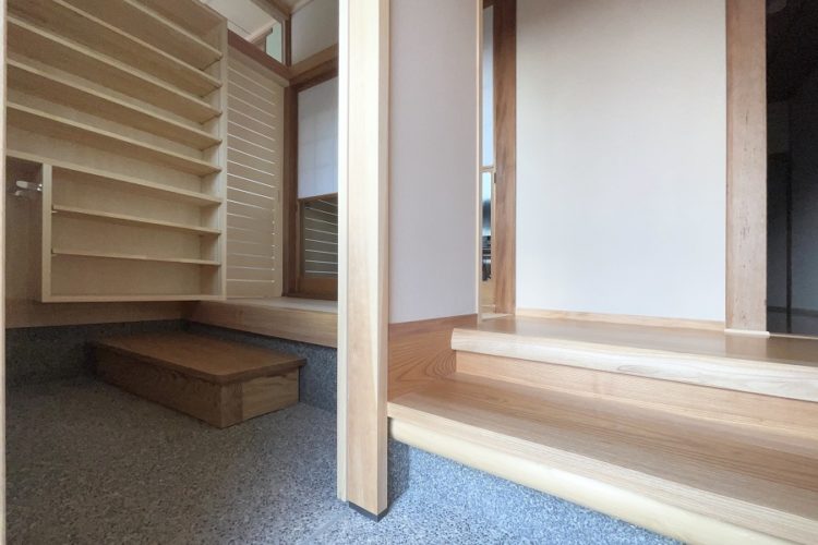 玄関ホールには施主様が購入・支給されたケヤキの一枚板