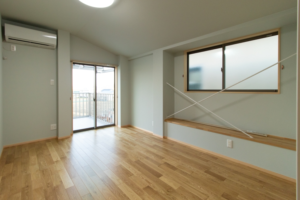 少しでも広い寝室にするため、鉄骨柱型や梁型はもちろん表しで、
