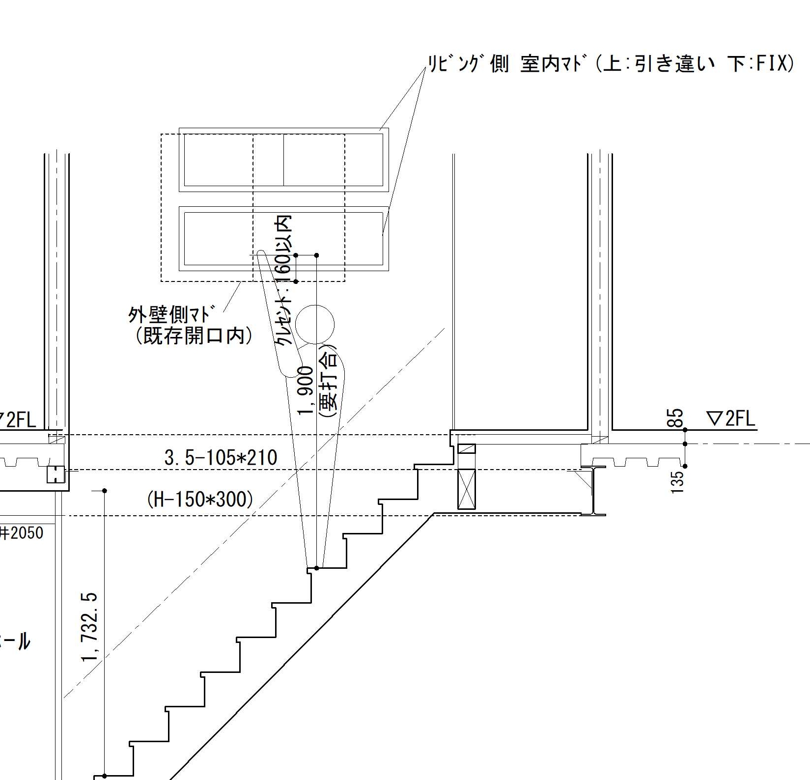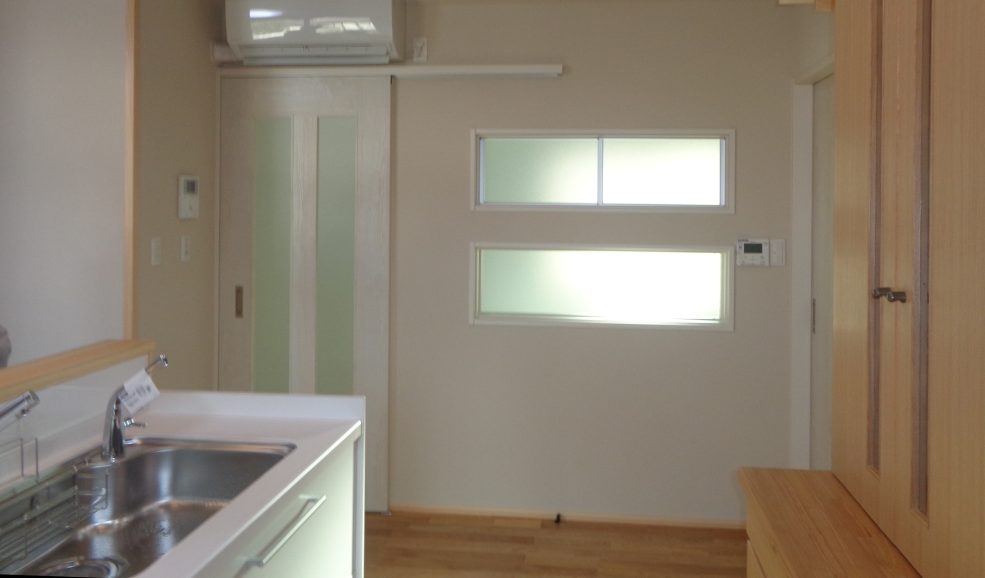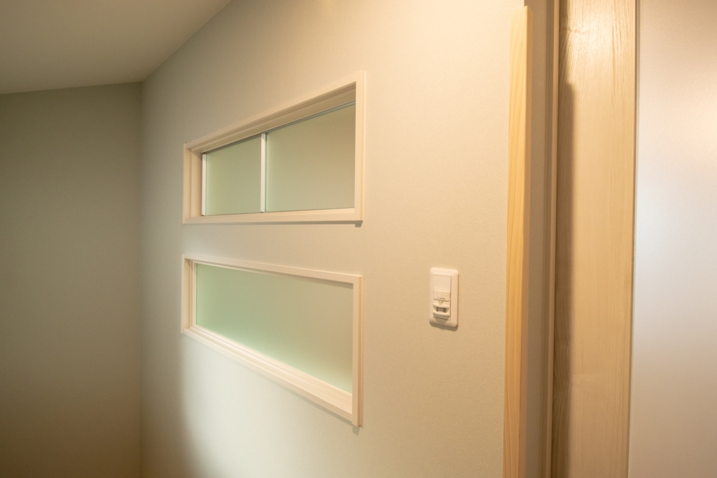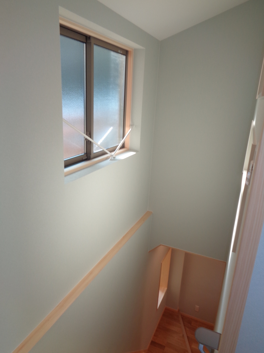 階段室とキッチンの間の壁(室内)に窓を設けました。