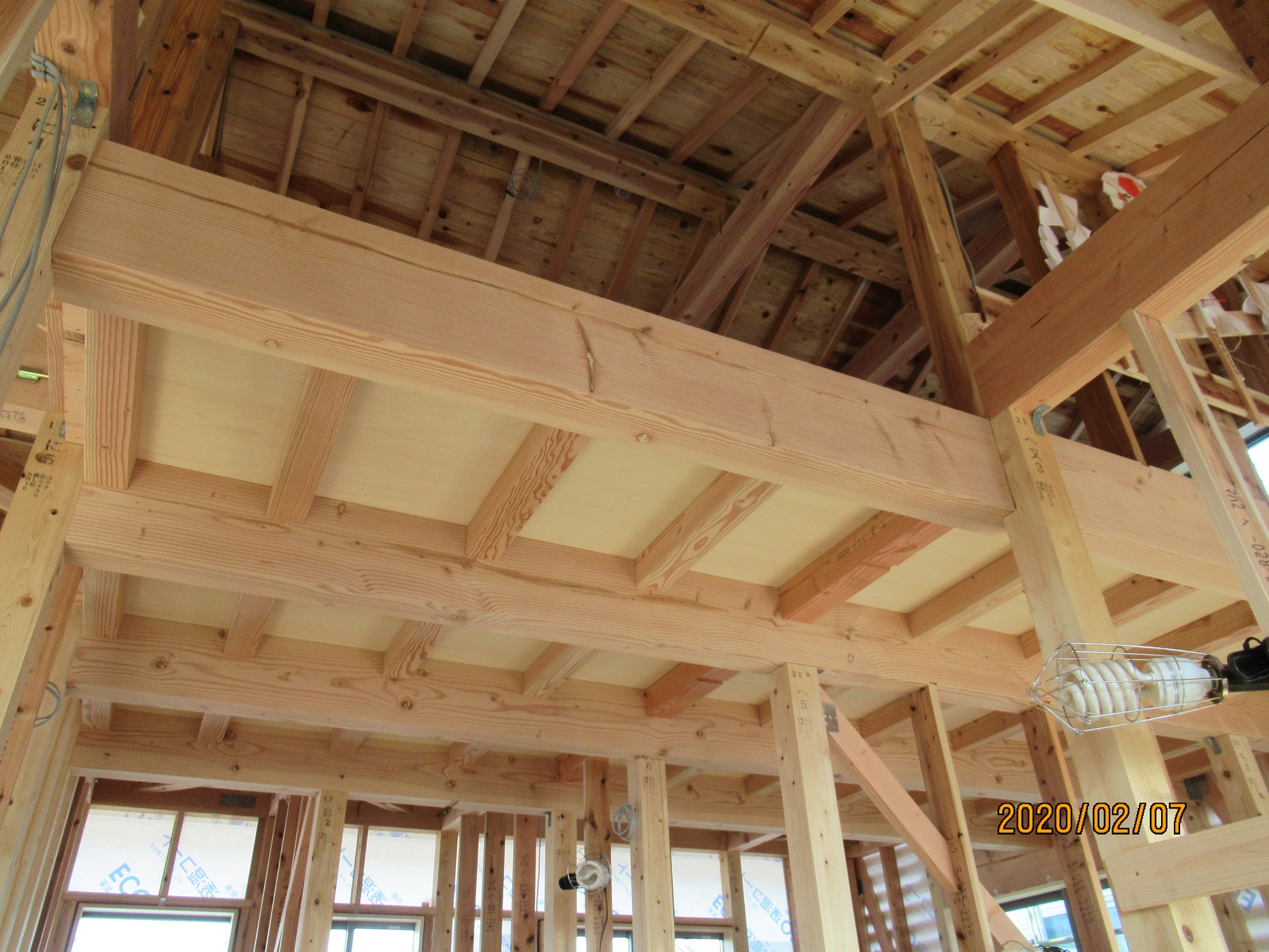 子供室と二階ホールの天井を、床と兼用する古民家の工法をとりいれて、