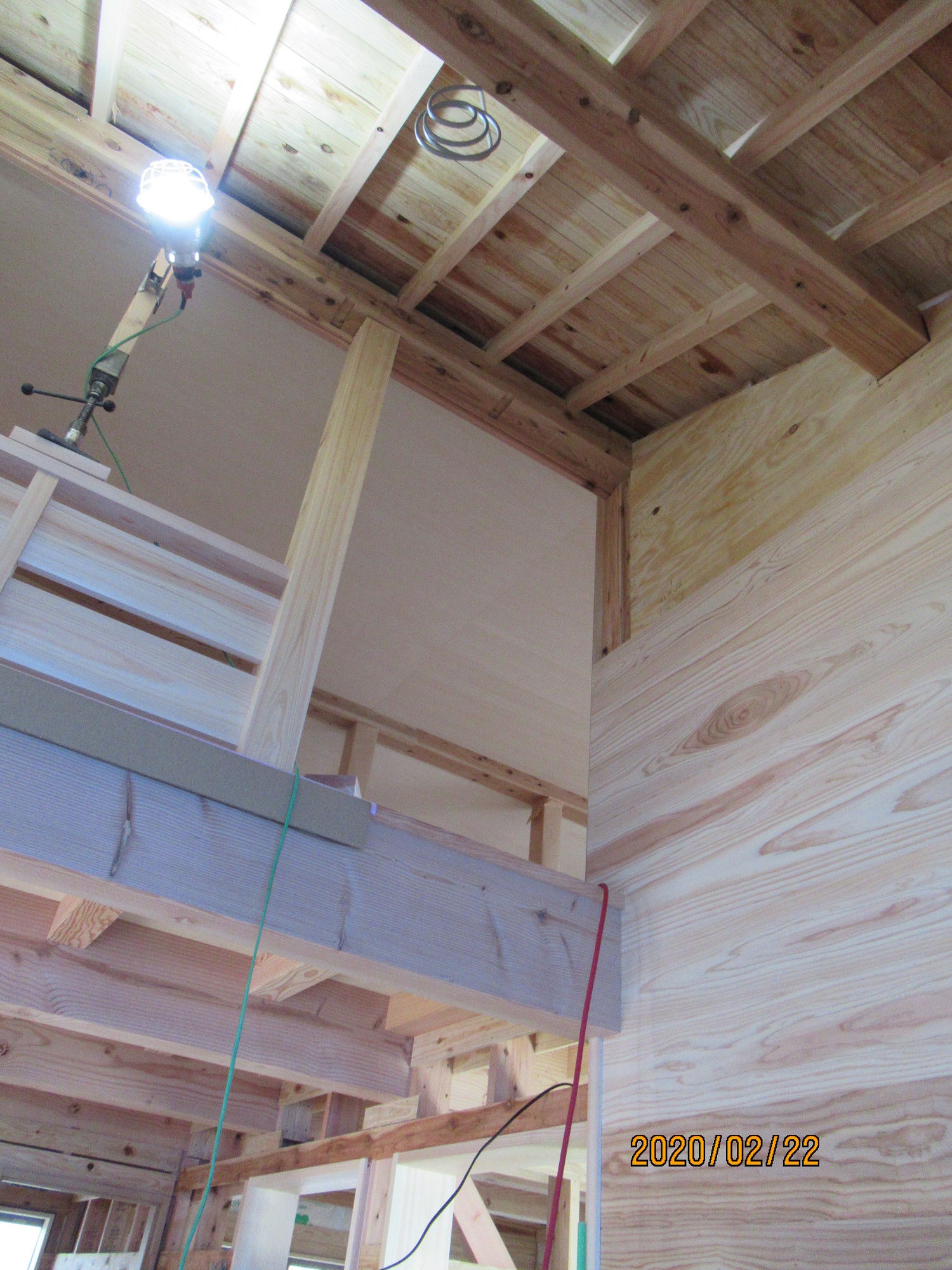 構造用合板15㎜の上に天然杉板30㎜を重ね貼りにしています。