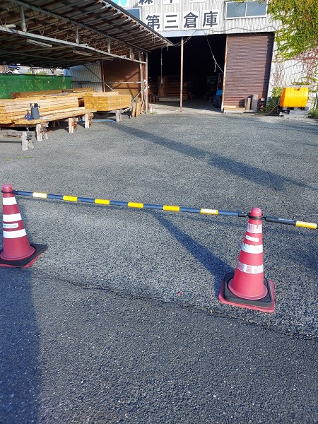 一般の人の立ち入り禁止や注意喚起が目的で、森本工務店の第3倉庫の入り口にも設置しています。