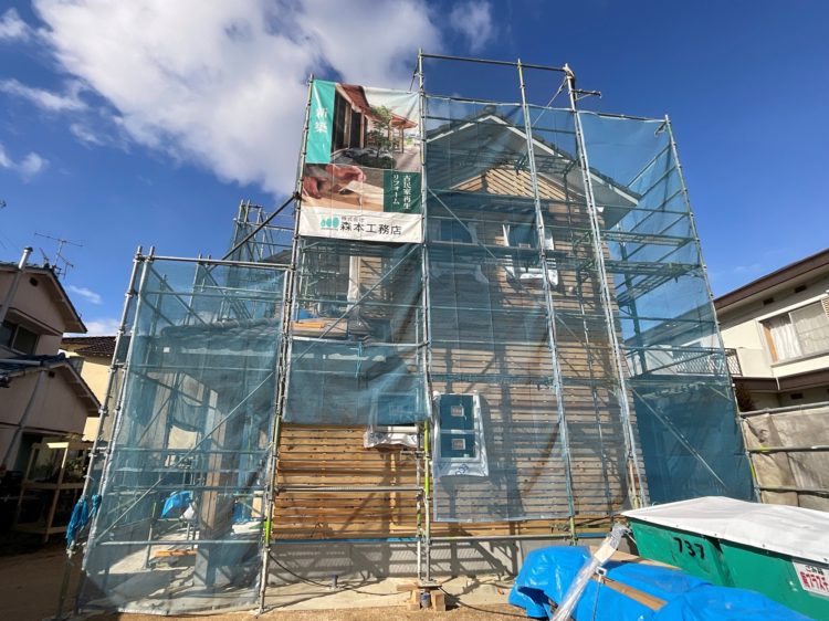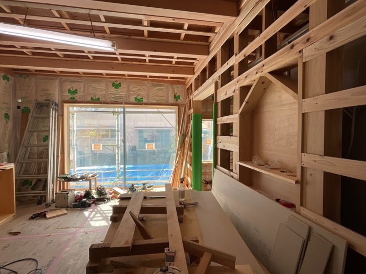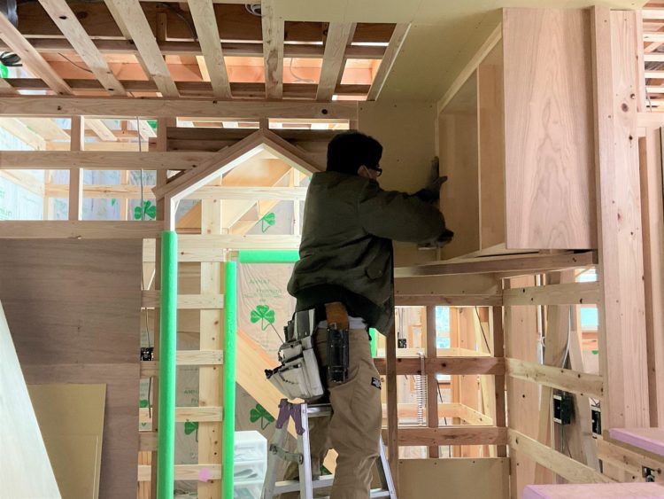 この日は大工さんがキッチンの造作収納家具を作っていました。
