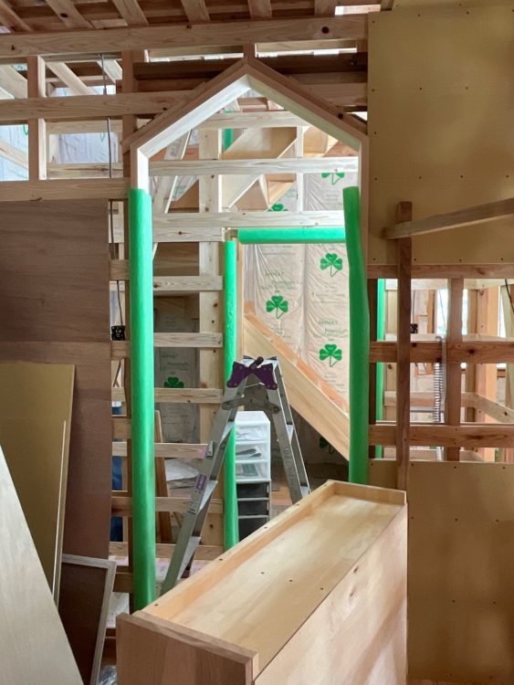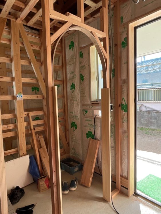 中に入ると、玄関収納やパントリーの間仕切りも三角やアーチにしたり遊び心が至る所に♪