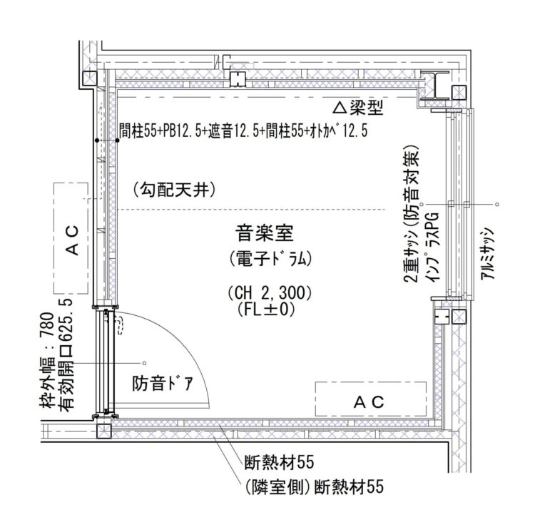 ご主人が楽器を演奏できるだけの小スペース音楽室でしたが、床と天井は無垢の杉材で
