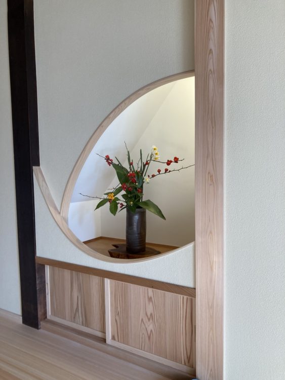 階段下の空間を利用した飾り棚も造作出来ました。