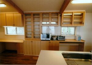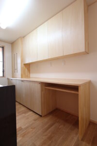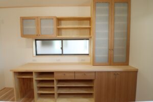 お手持ちの食器棚を組み込んで造り付けとしました。