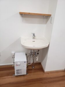 電気温水器も撤去し、湯ぽっとに対応できる手洗い器に取替もさせて頂きました。
