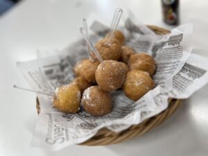 社長が、奈美さん手作りの豆腐ドーナッツを