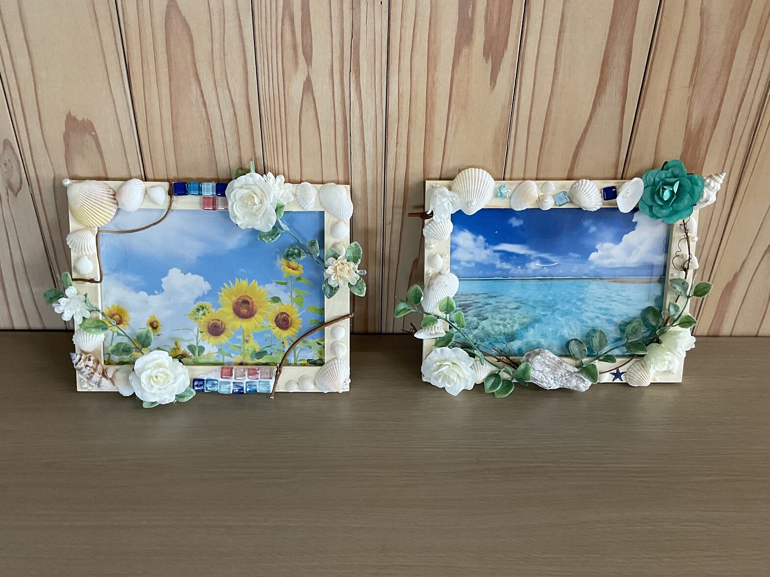 夏らしく貝殻を使ってオリジナルフォトフレームを作りました。