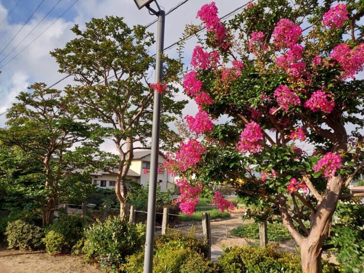 森本工務店の駐車場脇に、サルスベリの木が3本植えてあります。