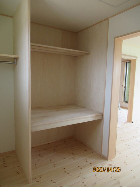 ウォーキングクローゼットの一部に、お布団専用の収納棚を。