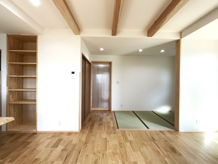 リビング脇には3畳ほどの畳を敷いていて、ゴロンと転がれるくつろぎ空間もいいですね♪