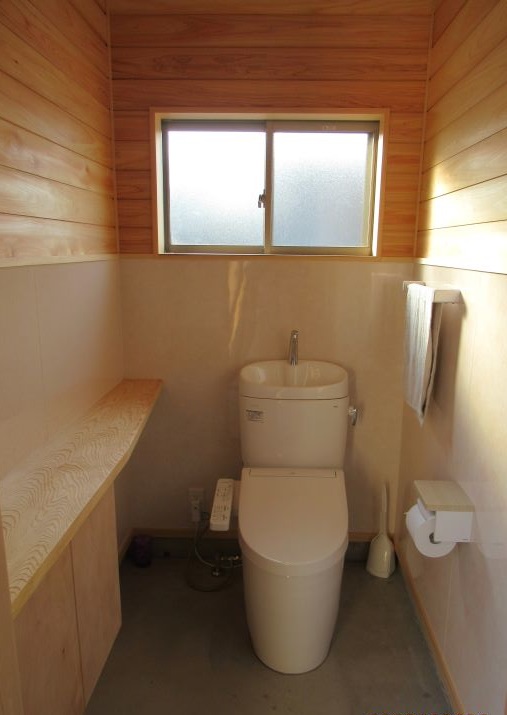 大便器の方は桧の板が張られ、松のカウンターが付いています。