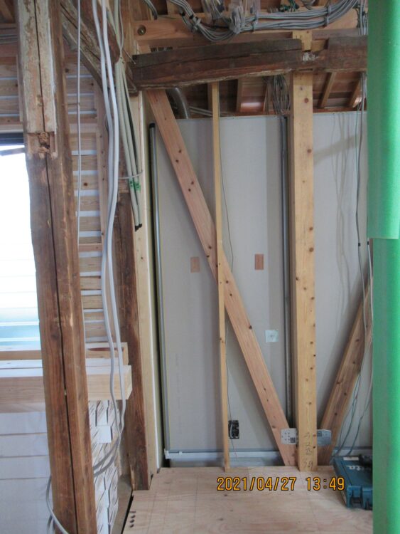 必要とされなかった水平方向の捻じれに対抗する火打ち梁と呼ばれる部材が必要になりました。