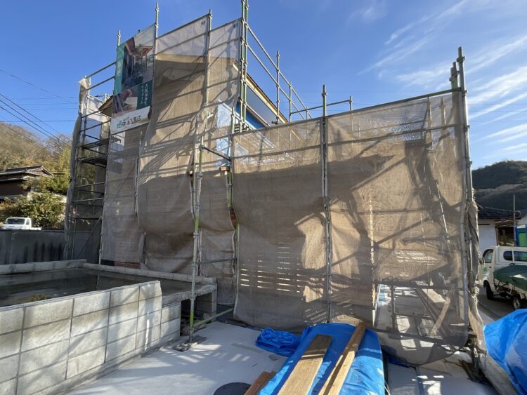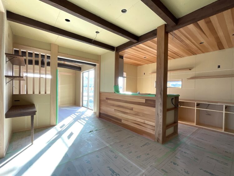 暑い夏の基礎工事や上棟から始まり、寒さの厳しい季節まで、大工さんや監督さんをはじめたくさんの職人さんが携わり現場は進んでいます。