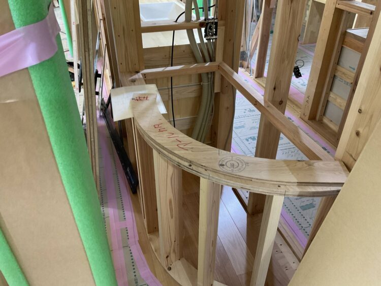 リビングの壁が一部が曲線になるところがあり、こんな風に下地をしています。