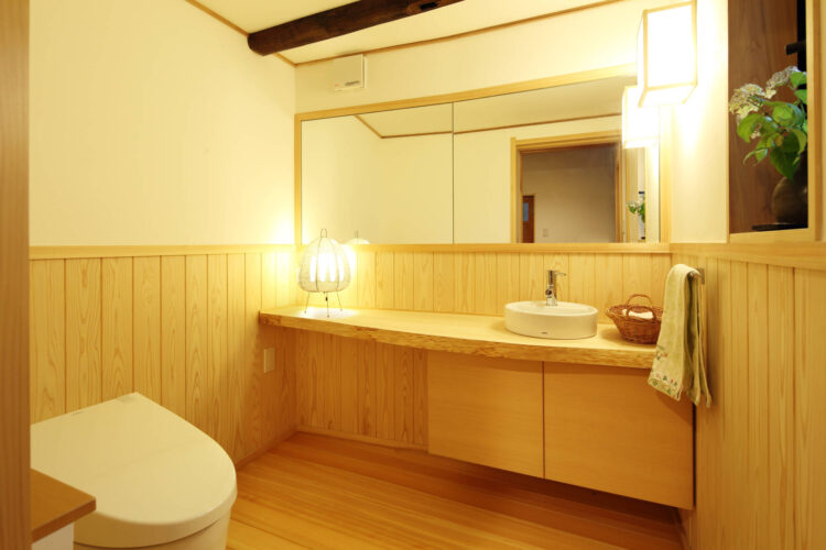 大小別々だったものを、広いトイレに。桧の天然木の香り一杯です。