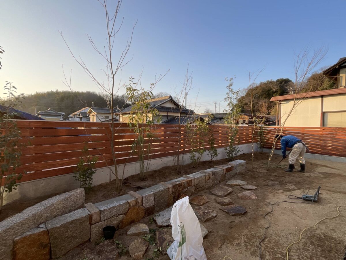 先日、造園屋さんが植栽を植えて建物が完成いたしました!