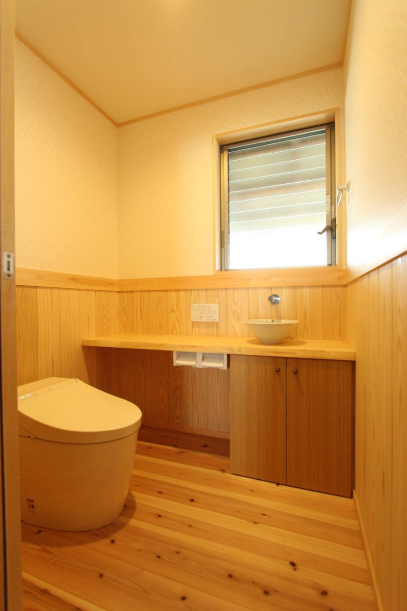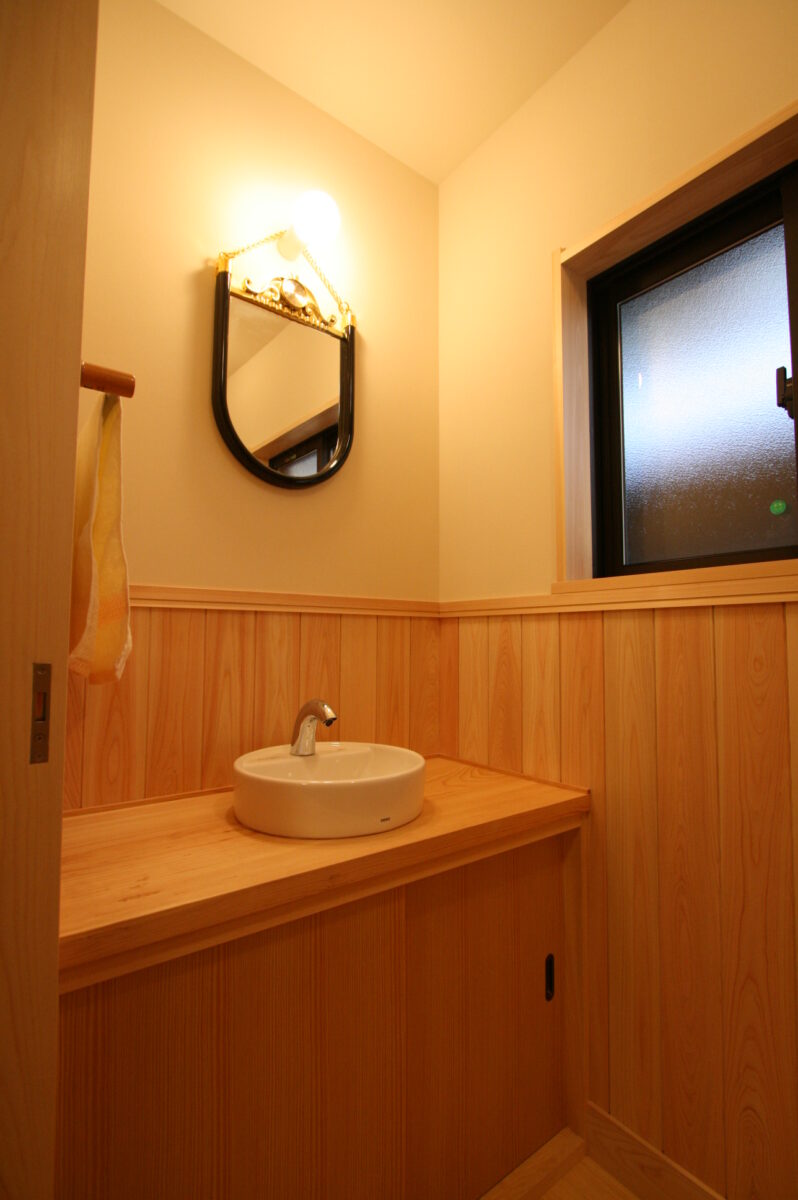 洋式の腰掛便器が当たり前になり、水分にたいする注意を極度に気にする必要も無くなった今、床材を天然木のフローリングにと、内装仕上げ材の選択肢も随分と広がりました。 最新機器類を否定するつもりは全くありませんが、ただ、便利さと引き換えに、耐用年数も短くなり、継続的メンテナンスも必要となり、その費用が発生する事もお忘れなく・・・。