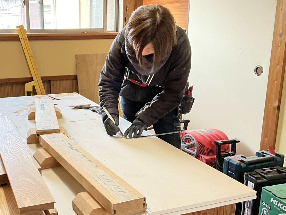 現場訪問時に作業風景を見させてもらうのですが、材料を運んでいる姿や、工具や道具を使っている姿、