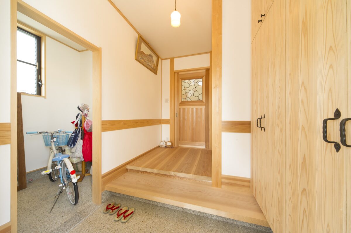 上り口に簀の子を設置して履物の脱ぎ履きを楽に。