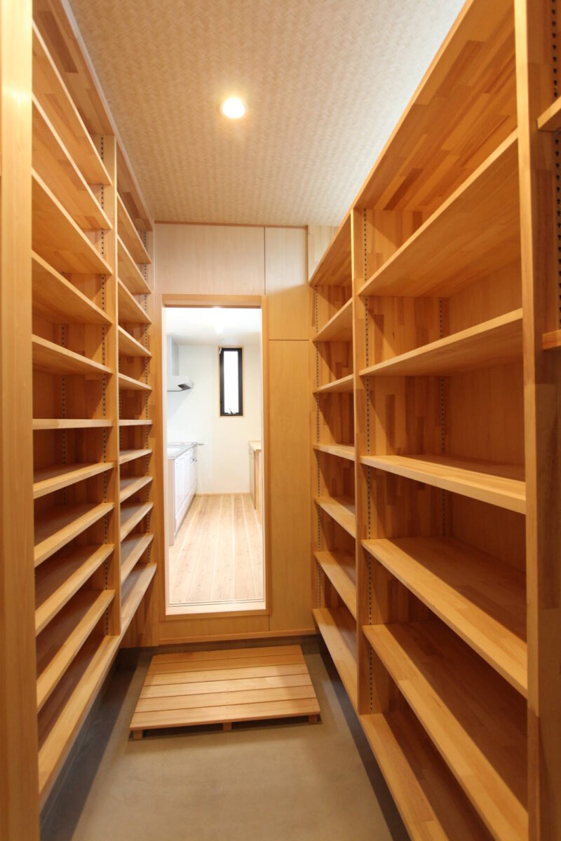 さらに階段下をも有効活用して。オープン棚は可動式に。