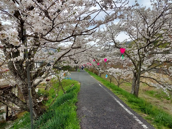 ほぼ満開で、桜のトンネルになってとても綺麗でした。
