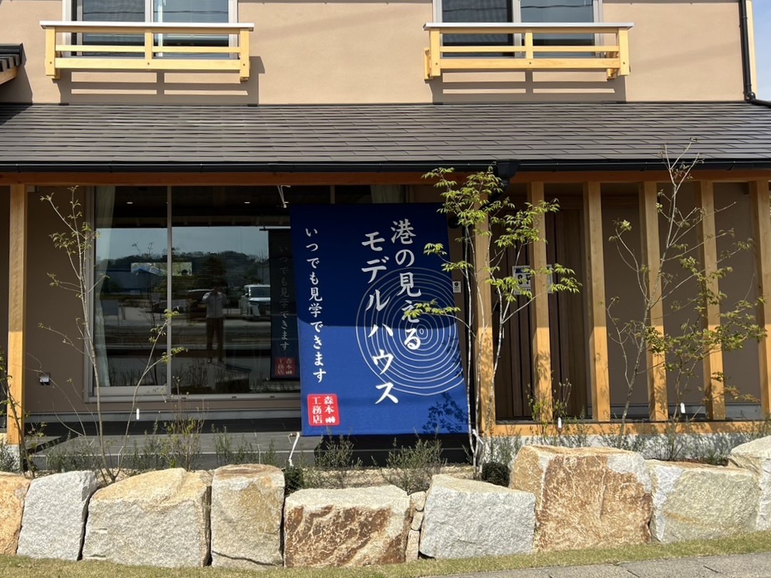 モデルハウスの正面には看板(のれん)がつきました。