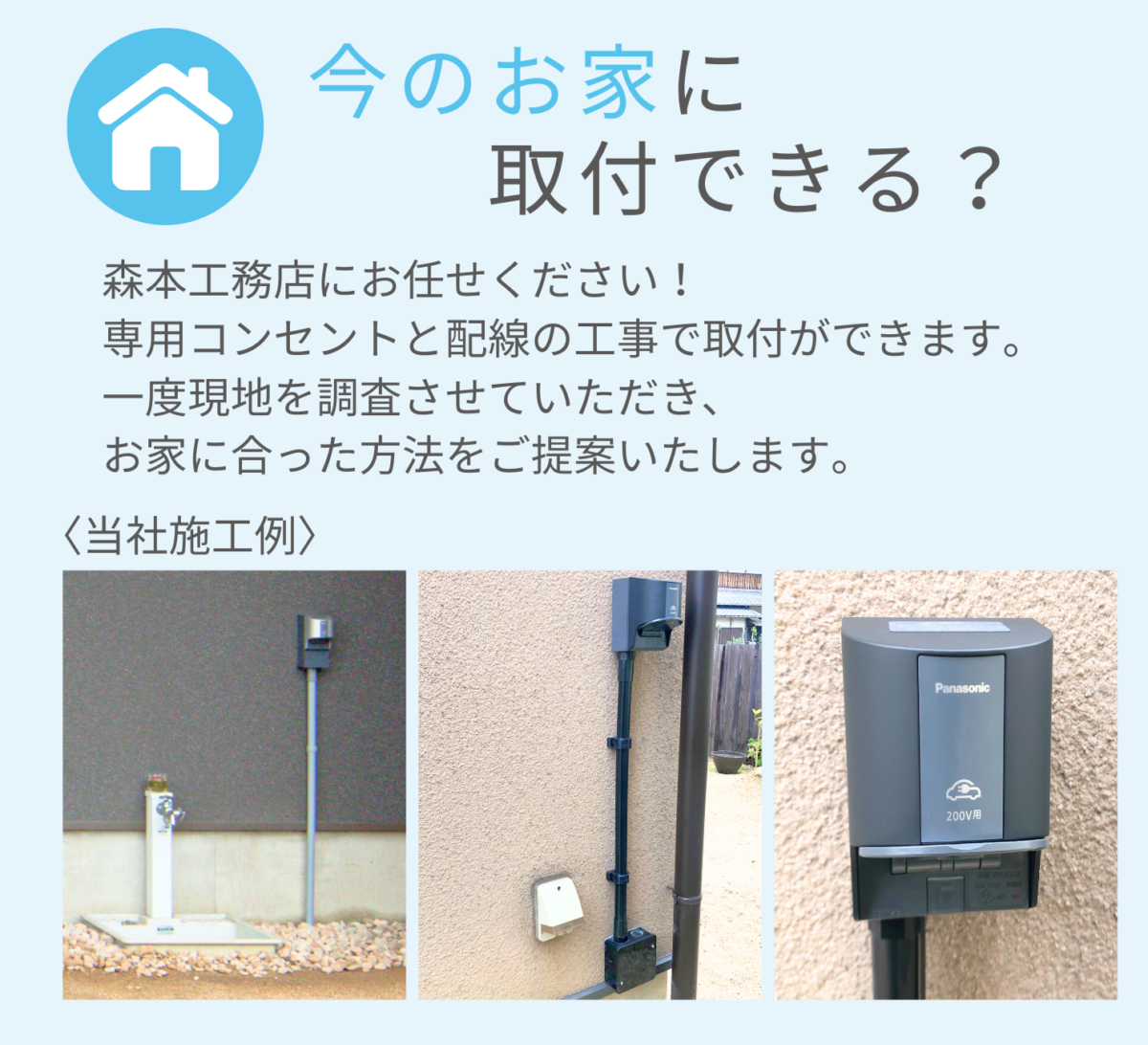 お家に合わせて充電設備の提案や工事方法の提案をさせていただきますので、