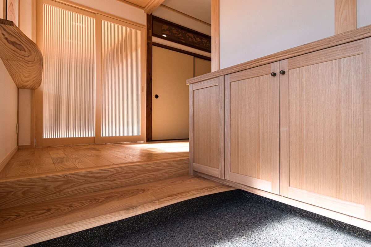 天然木天板の手造り下駄箱をしつらえた玄関に。