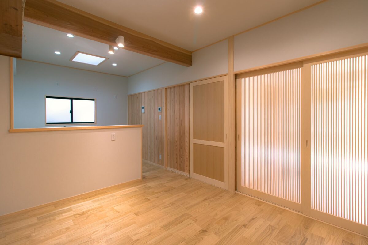 天窓をとりつけ、部屋境の建具を、光が入るデザインにして、薄暗かったLDKが見違えるほど、明るく開放的に蘇りました。