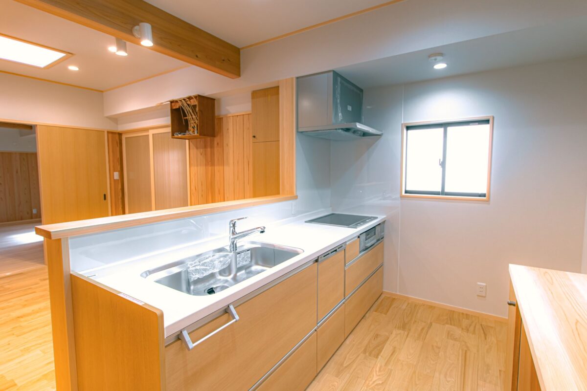 天然木材・漆喰・珪藻土と、自然素材を中心に、室内の空気感が自然そのままに、快適に暮らして頂ける改築工事の完成です。