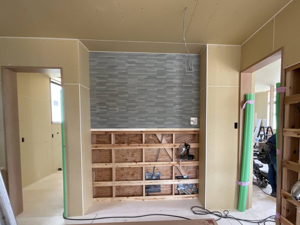 待合室と受付には部分的にエコカラットと呼ばれる調湿効果や脱臭効果をもつタイルを貼っています。