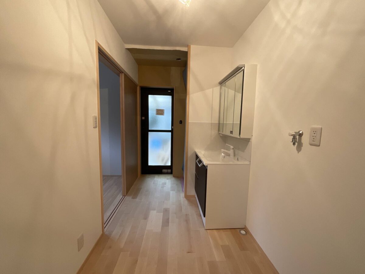 洗面・洗濯室は、広かった通路兼用の前室を、