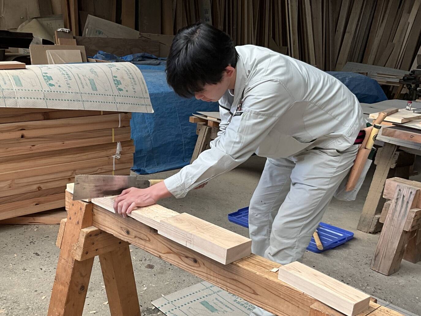 4月に入社した見習い大工さんの2人は社内で1ヶ月の研修を終え、今は大工の基礎を学んでいます。