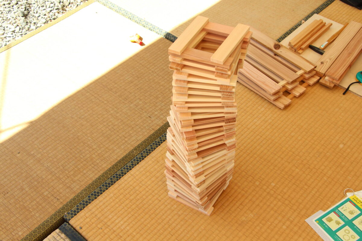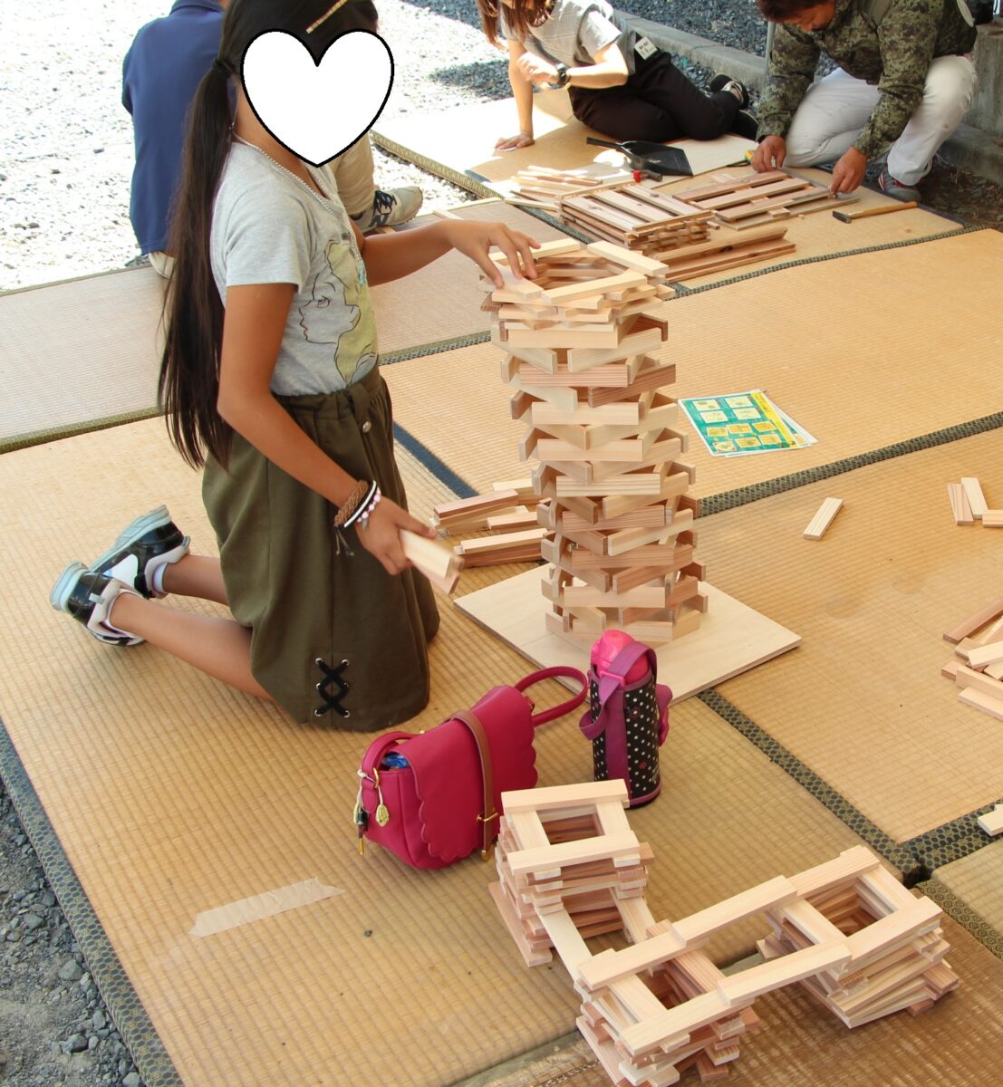 自分の背より大きいものを作れる嬉しさや壊す楽しみもあるようで、大人も一緒に楽しんでいます。