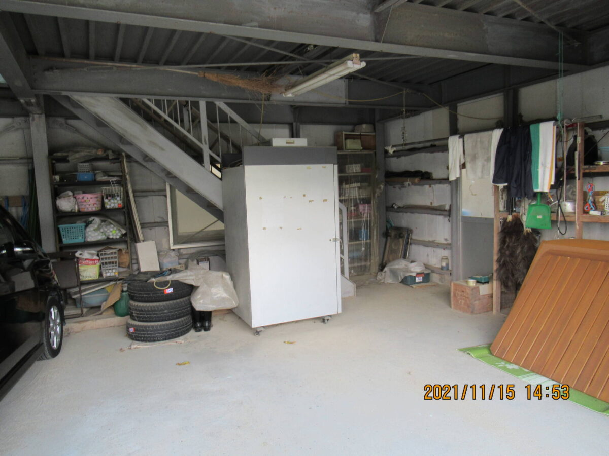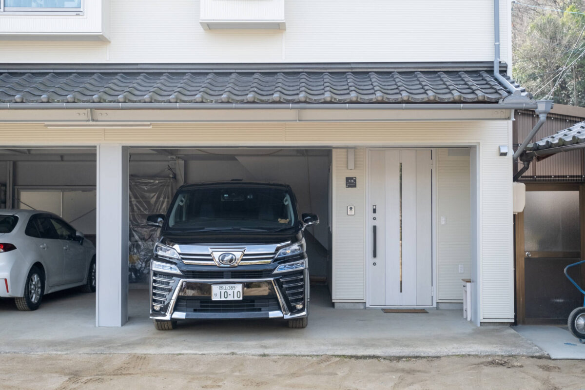 重量鉄骨造の1階が車庫・2階はフリースペースの離れを、
