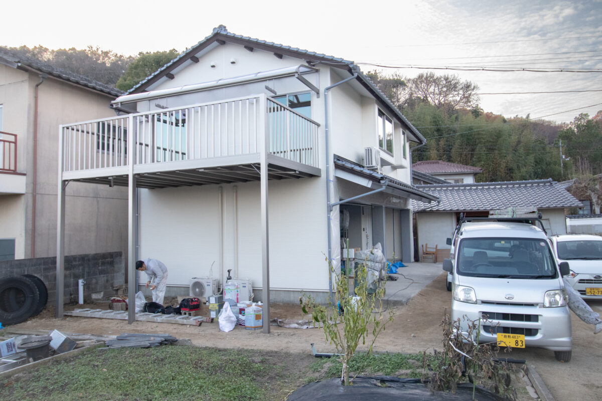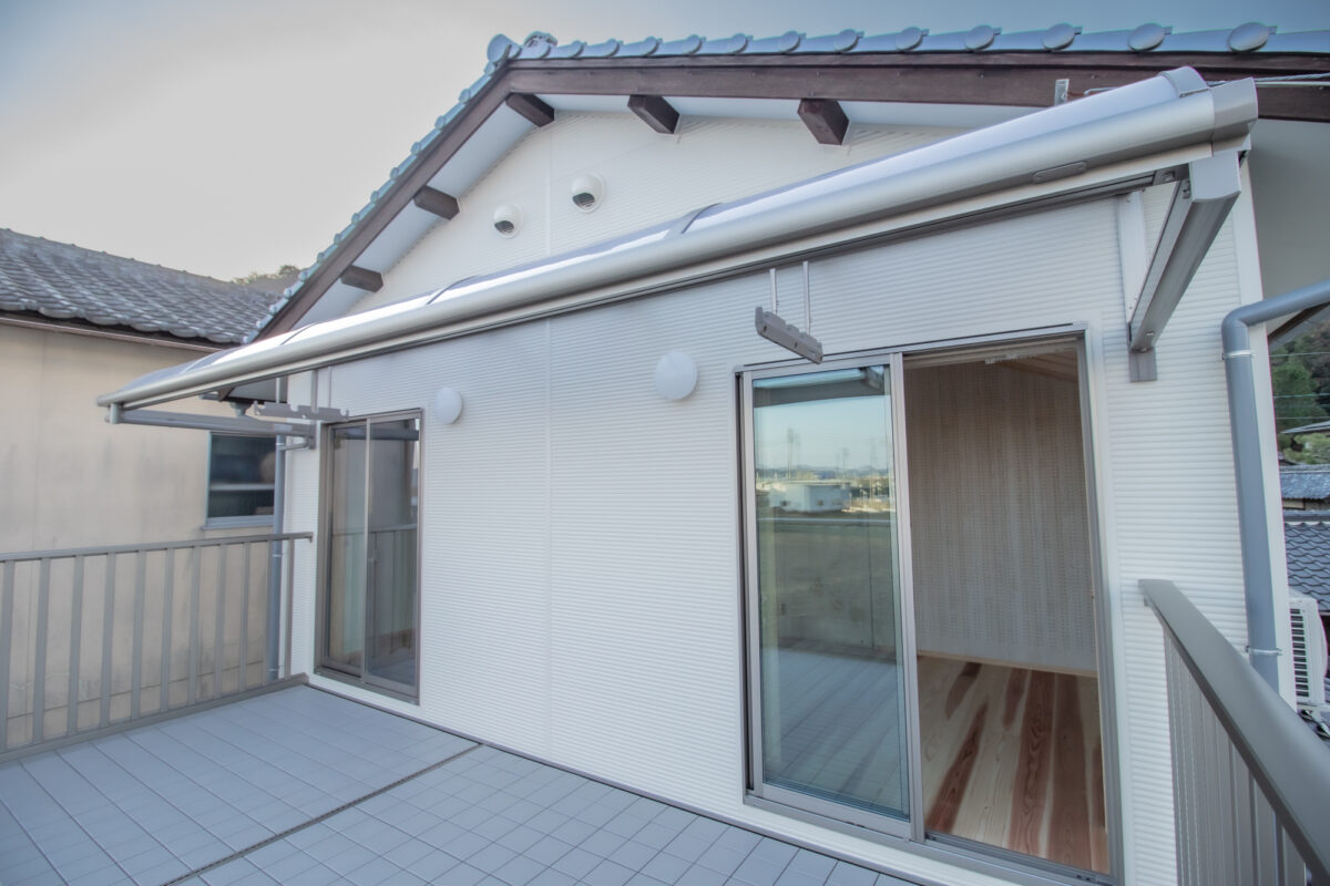 物干し場としての大きな庇も取り付けて、急な雨にも対応してます。