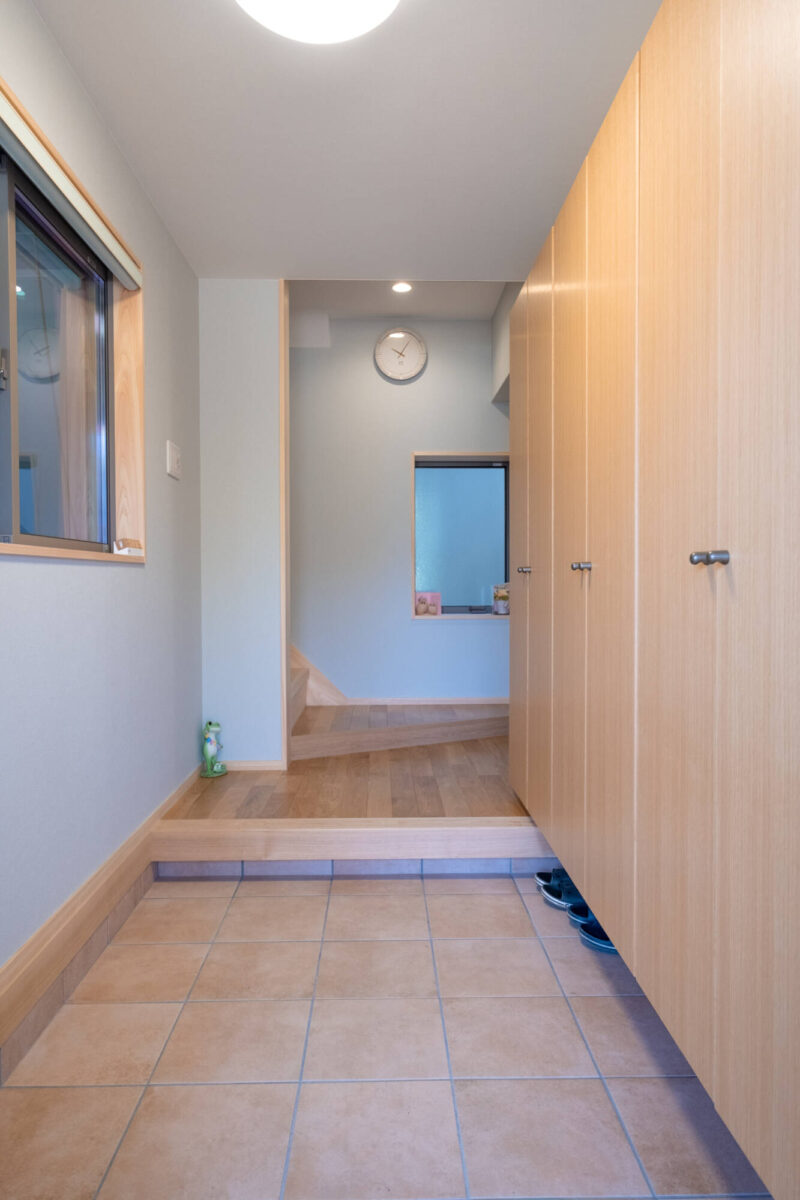 1階に広い玄関と、充分な収納をとのご希望に答えることもできました。