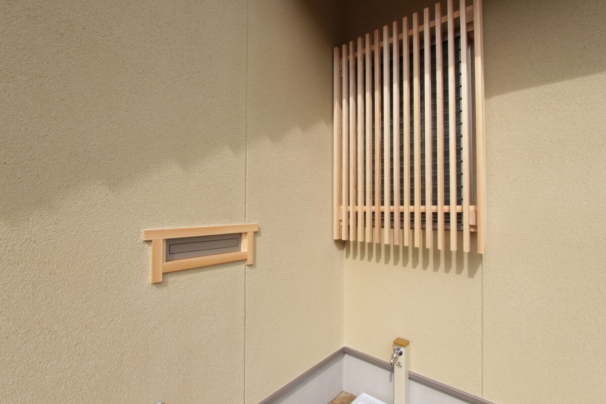 配達して下さる人の利便性を最優先して、玄関横の外壁に設置。