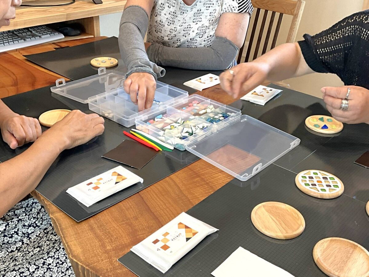 この組合せも可愛い、、、こっちのほうが素敵かしら、、、と皆さんタイルの形、色を選んで並べていきます。
