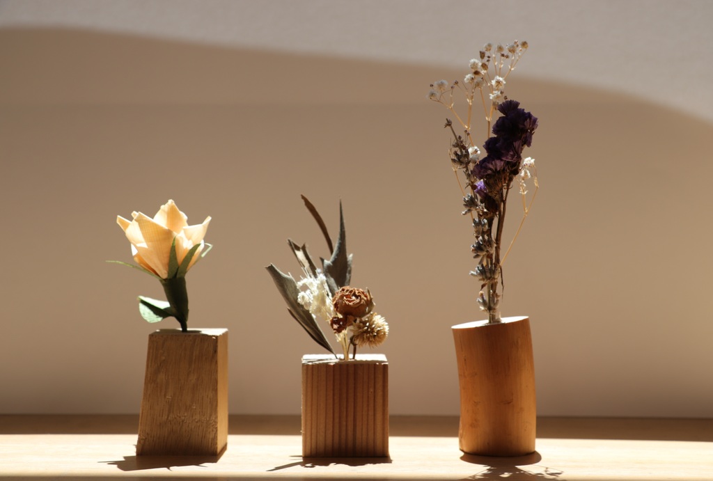 現在、モデルハウスへ予約してご来場いただくと木の一輪挿しをプレゼントしております!